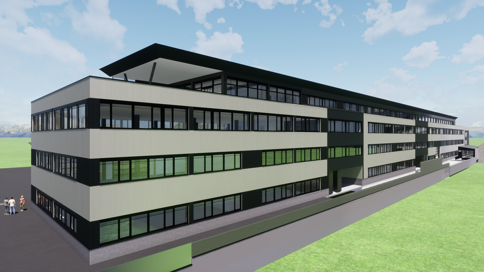 Über 100 Beschäftigte können hier einen Arbeitsplatz mit Wohlfühlfaktor erleben. Denn das neue Gebäude zeichnet sich durch vielfältige Kombinationsmöglichkeiten mit modernsten Büro- und Produktionsflächen und einer nachhaltigen Bauweise aus.